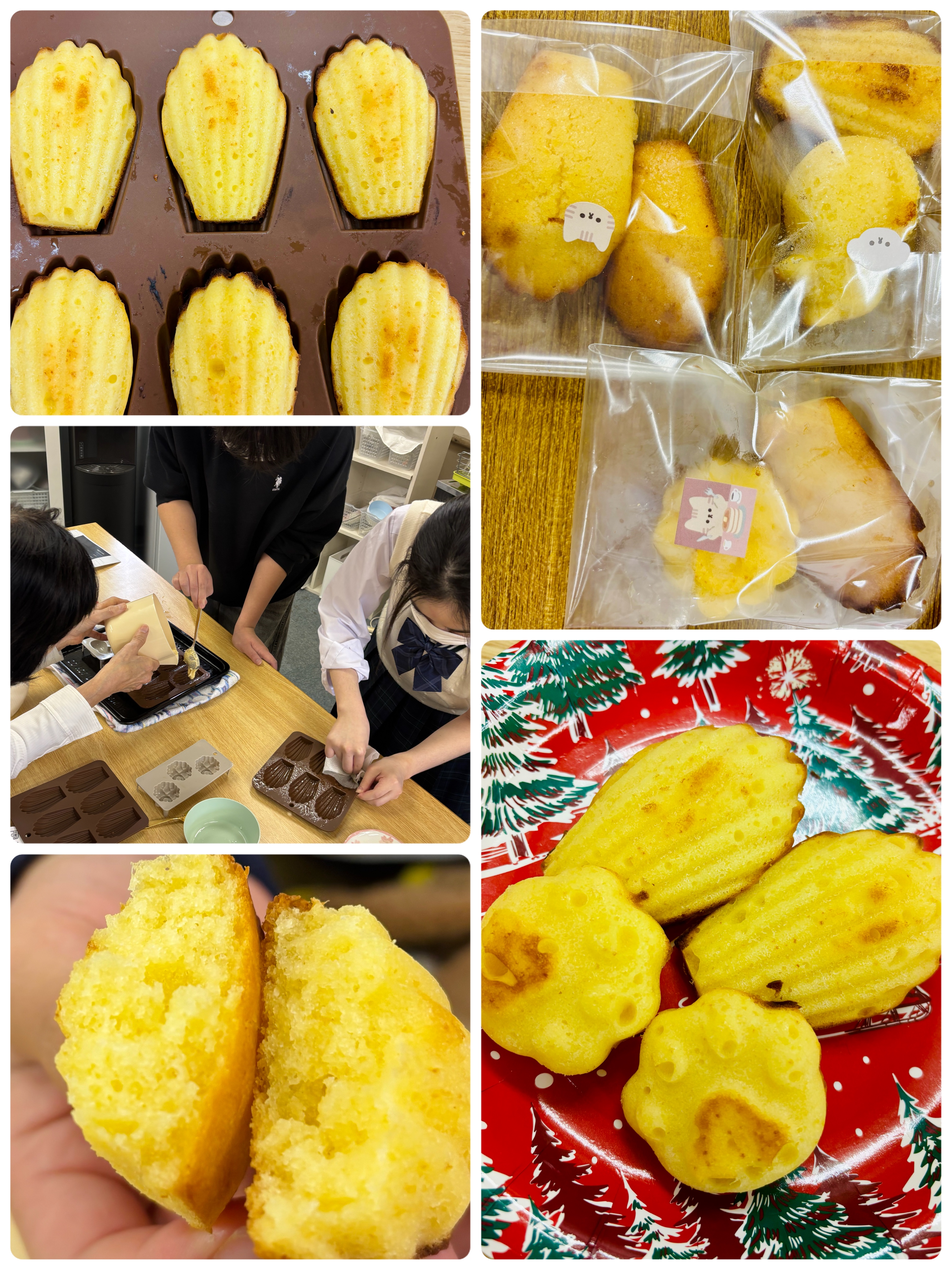 焼き上がったマドレーヌは、出来立てならではのふわふわ・しっとり食感。「おいしいね〜!」と話しながら、みんなで味見をしているうちに、つい食べすぎてしまうほどでした🤭中には、クリスマスプレゼントとして持ち帰る子もいて、「喜んでもらえるといいなぁ」なんて話しながら、袋に詰める姿がとても微笑ましかったです。