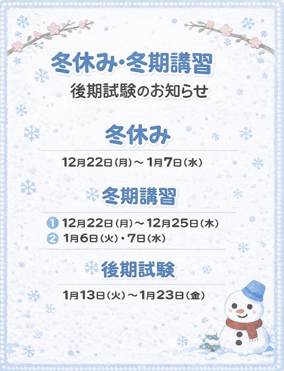 ◉また、冬期講習は申込制です。講習申込者はご連絡下さい✏️